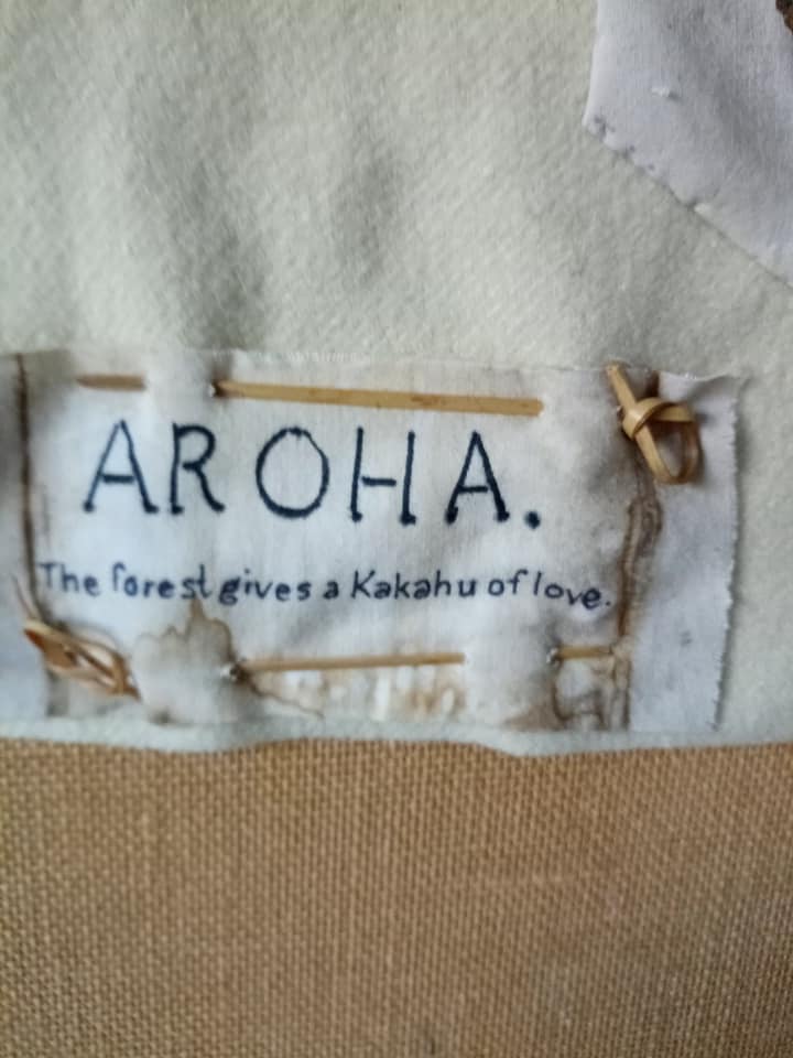 I called the piece, “Aroha the forest provides a kakahu (cloak) of love.” Everthing used was recyled and the whole piece is recyclable.